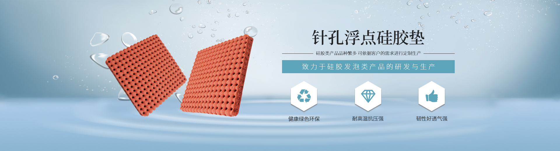 我公司生產的硅膠海綿(開孔)系列產品具有耐高溫、透氣性好、耐壓性強等優(yōu)點,是西服及高檔服裝整燙生產的必備產品。硅膠發(fā)泡板(閉孔)系列產品具有發(fā)泡均勻,耐高溫、耐壓性能好,其中新研制開發(fā)的針孔浮點硅膠發(fā)泡板攻克了一般產品的浮點不飽滿的技術難題,一般產品的浮點不飽滿,容易擋住透氣孔,造成吸風效果不良。我司的產品具有更好的透氣性和回彈性,以及更長時間的試用壽命。